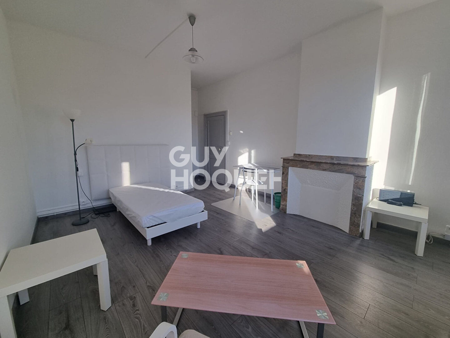 EXCLUSIVITE - Albi - Rue du Castelviel , joli T2 meublé, au deuxième étage d'un immeuble classé. Cuisine américaine équipée donnant sur la pièce de vie, chambre avec armoire, salle d'eau. Vous descendez et vous êtes au pied de la cathédrale. Cave.